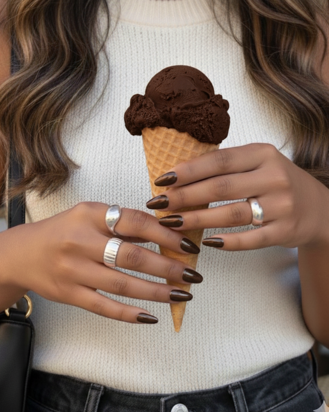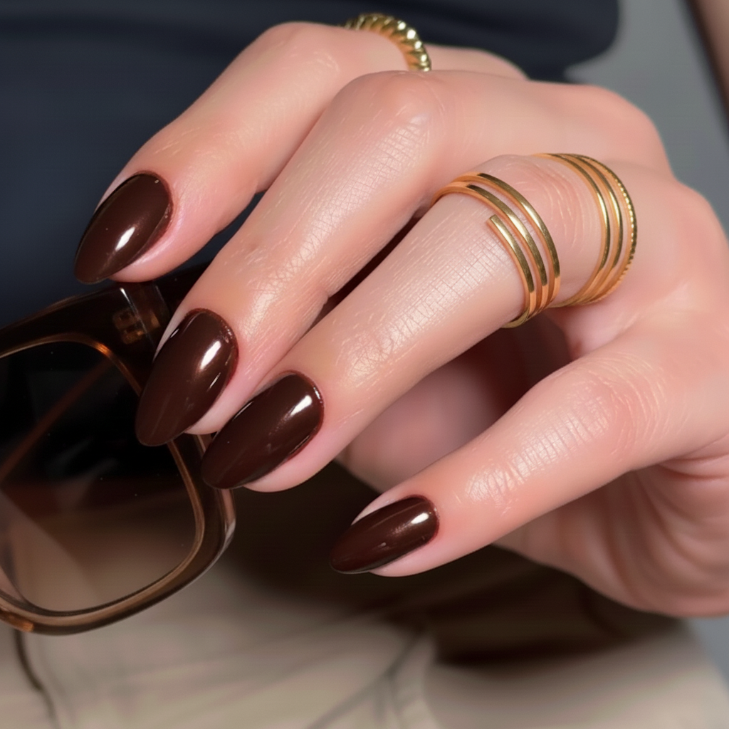 The refined neutral you didn't know you needed. Deep, warm, impossibly chic. A chocolate-brown with a subtle chrome sheen that works from coffee meetings to dinner plans. No salon. No second-guessing. Just elevated everyday.