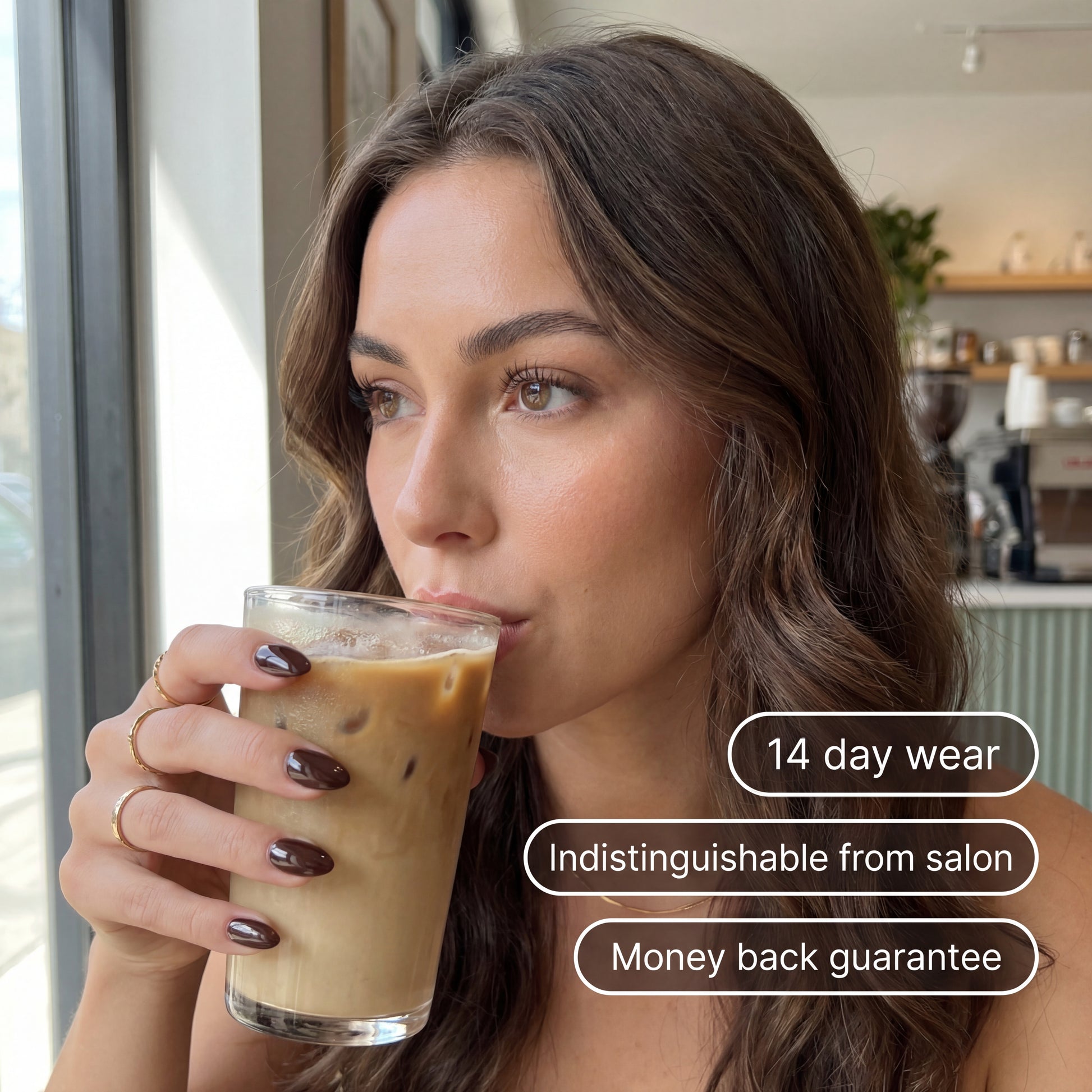 No drilling. No filing. Your nails stay protected and healthy underneath.